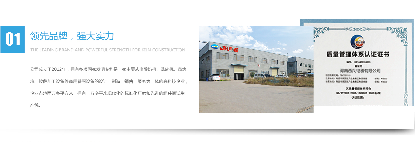 河南西凡電器有限公司位于河南省商丘市梁園區(qū)產(chǎn)業(yè)集聚區(qū)洋森路(和諧路)52號(hào)。商丘市是處在高速鐵路和高速公路雙黃金十字架的核心區(qū)域,具有地理位置優(yōu)越,交通便利的優(yōu)勢(shì)。公司成立于2012年,擁有多項(xiàng)國(guó)家發(fā)明專(zhuān)利,是一家主要從事酸奶機(jī)、洗碗機(jī)、蒸烤箱、披薩加工設(shè)備等商用餐廚設(shè)備的設(shè)計(jì)、制造、銷(xiāo)售、服務(wù)為一體的高科技企業(yè),企業(yè)占地兩萬(wàn)多平方米,擁有一萬(wàn)多平米現(xiàn)代化的標(biāo)準(zhǔn)化廠(chǎng)房和先進(jìn)的組裝調(diào)試生產(chǎn)線(xiàn)。        公司有專(zhuān)業(yè)的研發(fā)團(tuán)隊(duì),具有強(qiáng)大的技術(shù)研發(fā)實(shí)力,企業(yè)耗巨資引進(jìn)國(guó)外的先進(jìn)設(shè)備,擁有優(yōu)質(zhì)的激光切割設(shè)備、數(shù)控沖、剪、折彎、自動(dòng)焊接等系列加工設(shè)備,有一支機(jī)械、電器、燃?xì)獾雀咚刭|(zhì)的生產(chǎn)作業(yè)團(tuán)隊(duì),有無(wú)窮潛力,并有精良的質(zhì)量檢測(cè)設(shè)備和儀器。產(chǎn)品暢銷(xiāo)國(guó)內(nèi)外。我們公司的宗旨是:“以市場(chǎng)為導(dǎo)向、以科技為依托,以質(zhì)量求生存、以誠(chéng)信謀發(fā)展?!?nbsp;    &n...查看更多